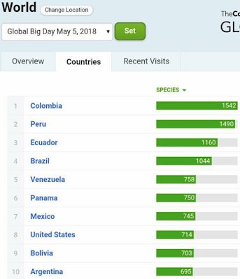 The birds were amazing, but the participation was great too! About 1300 checklists submitted placed us # 5 worldwide in participation. The vast majority of the birders sent their data through the eBird accounts of their teams instead of opening their own accounts, something we plan to improve for the next event. All the participants count; however, I would like to highlight that groups of high school students, who benefited from Cornell's "Detectives de Aves Internacional" curriculum which Katherine Araúz has been with in Panama for a while, also participated. Children are the hope of the future! And about the habitat status data, well... we are still collecting it; however, it was clear that many participants did not want to be mere passive observers and some decided to leave their counting areas better than they found them!